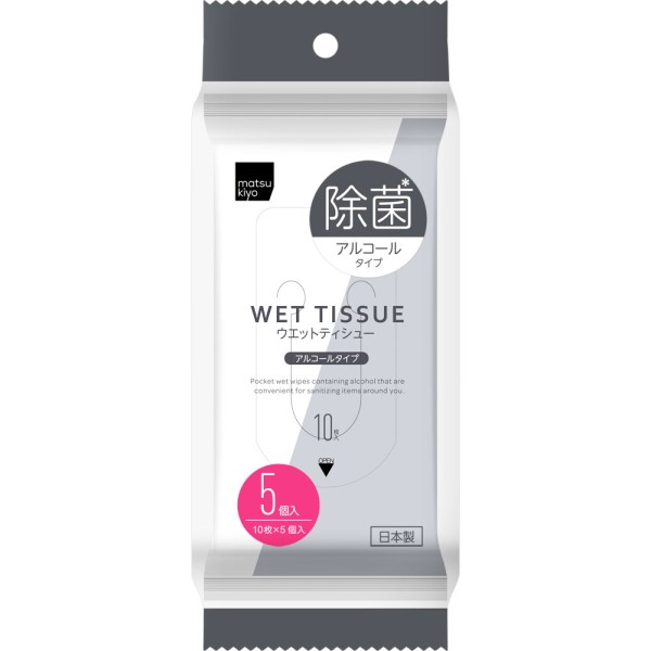 마츠키요 웨트 티슈 제균 알코올 타입 10매×5개입 > 제균