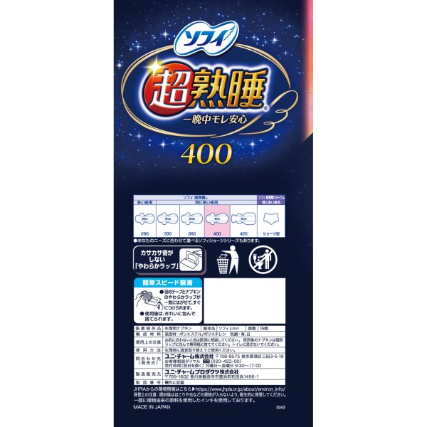 소피 초숙면가드 특히 많은 밤용 날개있음 400 16매 유니참 > 소피 초숙면 가드