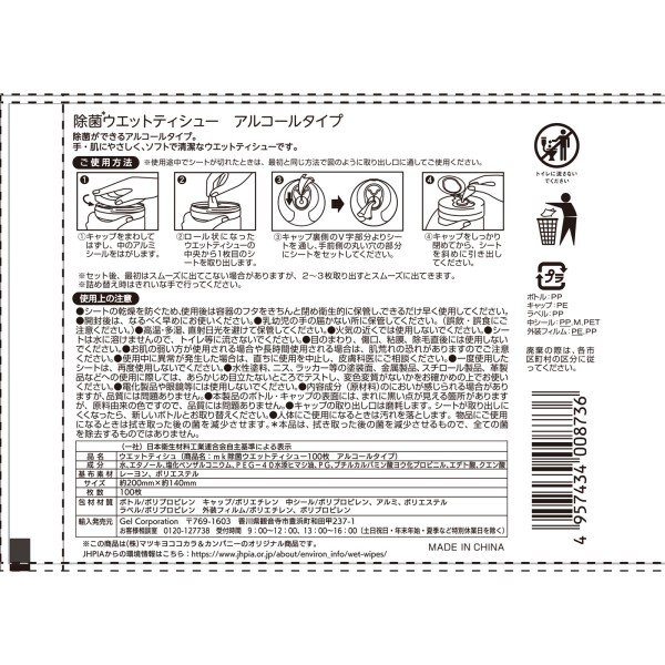 마츠키요 제균 웨트티슈 알코올 100매 보틀 > 제균