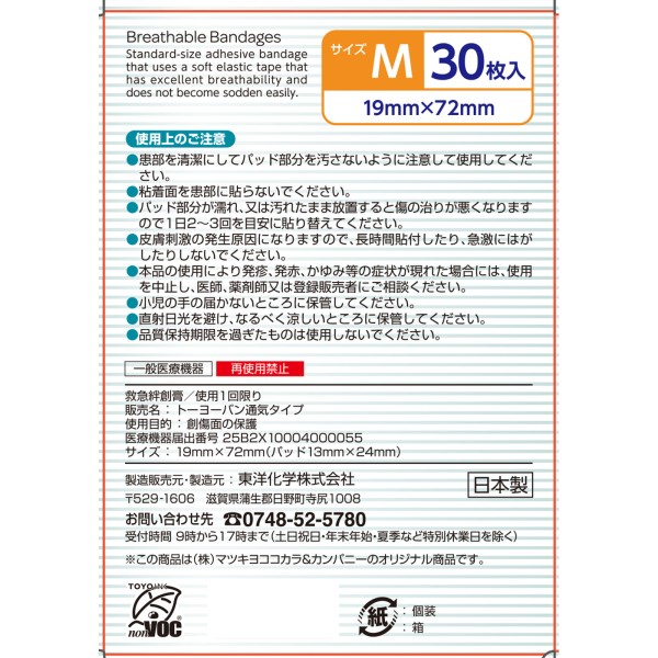 마츠키요 통기 반창고 M사이즈 30매 > 구급 밴드(스탠더드 타입)