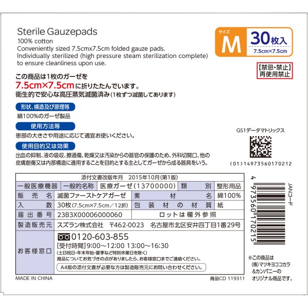 마츠키요 멸균 거즈 M 대용량 30매 > 거즈