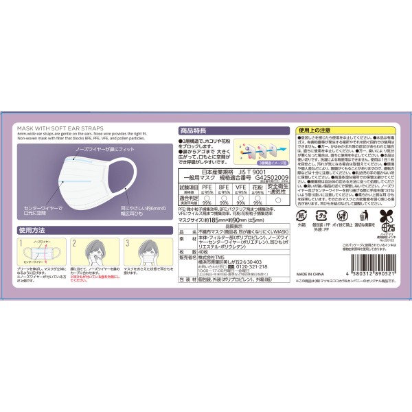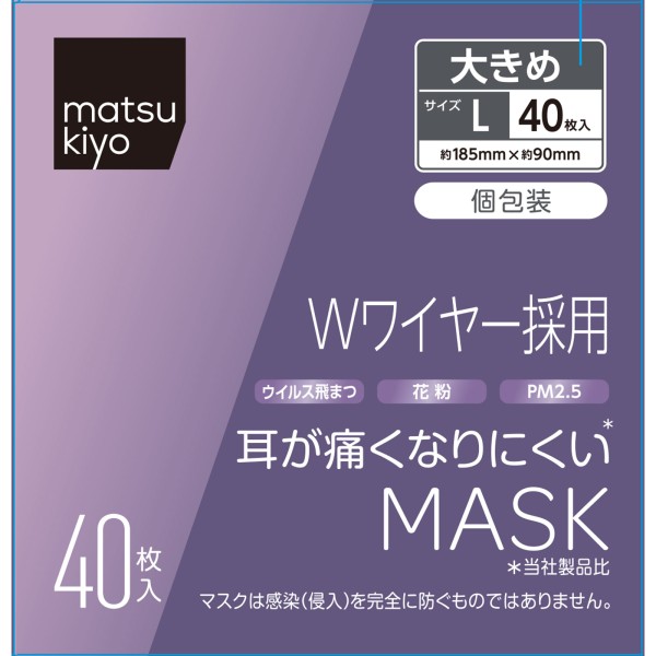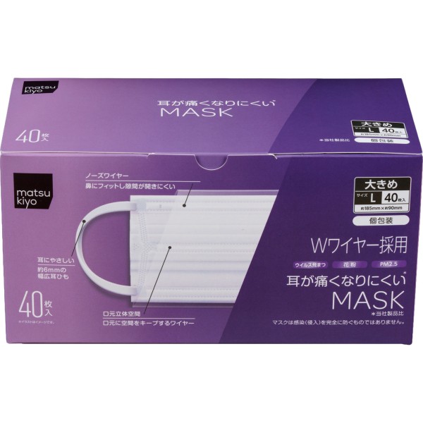 mk 귀가 아프지 않은 마스크 개별포장 L 40매입 > 특수 마스크