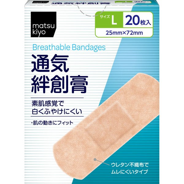마츠키요 통기 반창고 L사이즈 20매 > 구급 밴드(스탠더드 타입)