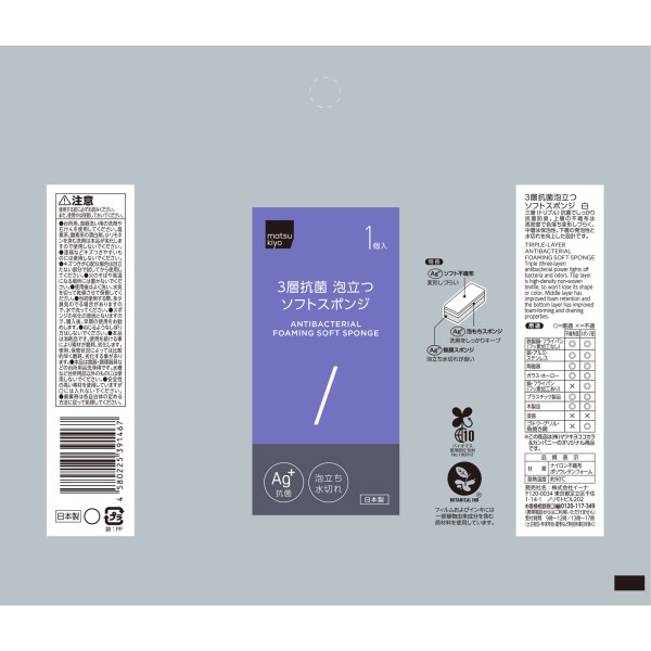 마츠키요 3층 항균 거품 나는 소프트 스펀지 1P 흰색