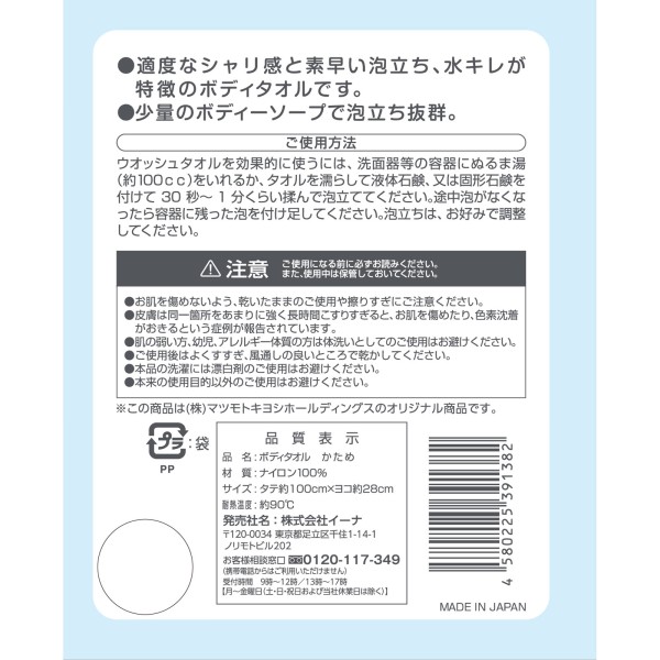 마츠키요 나일론 바디타올 단단함 1매입 > 나일론 타월