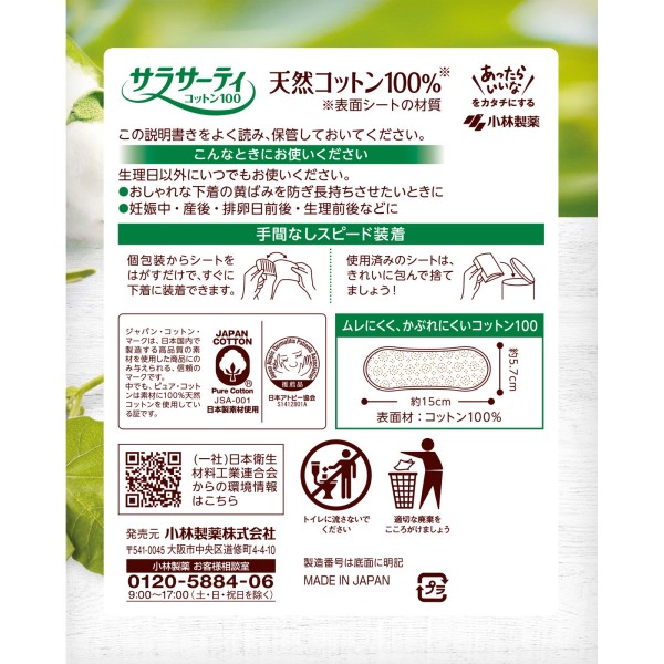 사라사티 코튼100 무향 112매 고바야시제약 > 사라사티