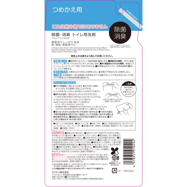 마츠키요 제균·소취 화장실용 세제 리필 350ml > 안심(중성) 타입