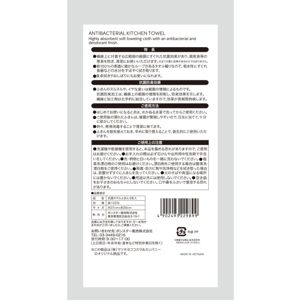 마츠키요 항균 타올 행주 3매입 > 코튼