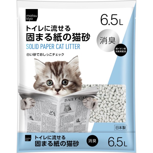 마츠키요 화장실에 흘릴 수 있는 굳어지는 종이 고양이 모래 6.5L > 종이·나무