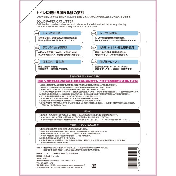 마츠키요 화장실에 흘릴 수 있는 굳어지는 종이 고양이 모래 6.5L