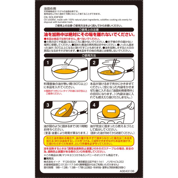 마츠키요 천연 식물성 기름 응고제 600ml용 18g×10포 > 폐유 처리제