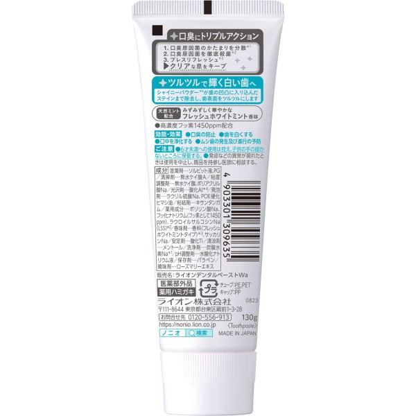NONIO(노니오) 플러스 화이트닝 치마개 치약 130g 라이온 > 구취 예방