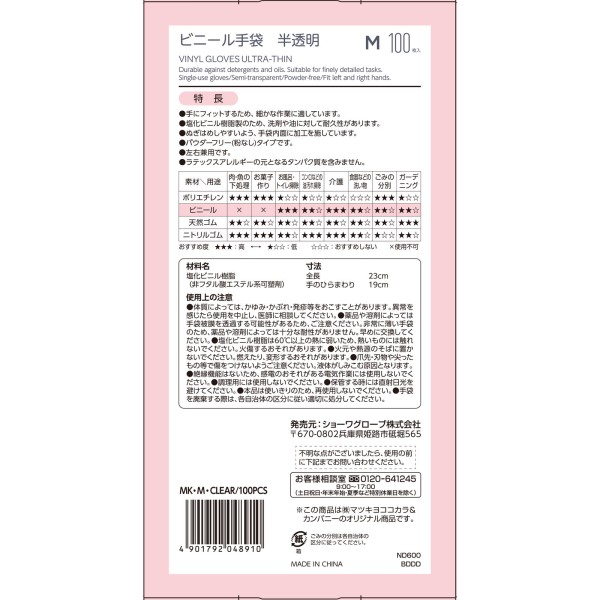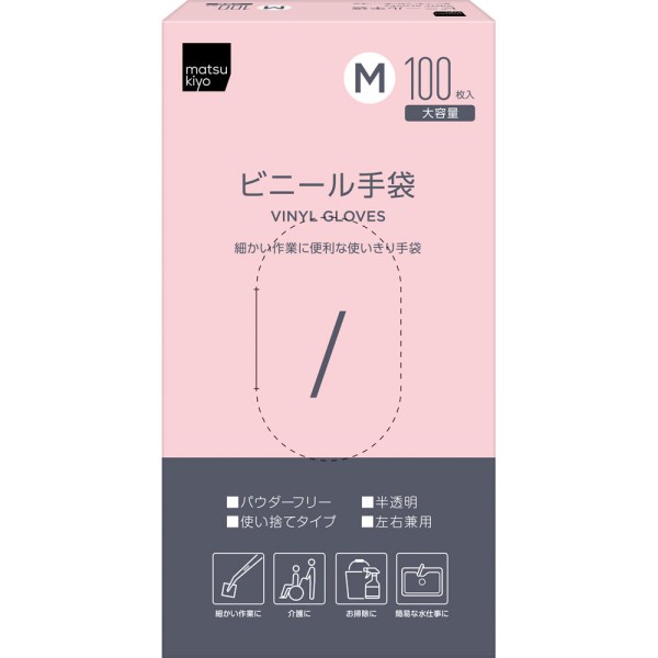 마츠키요 비닐장갑 초박형 M 100매 > 비닐