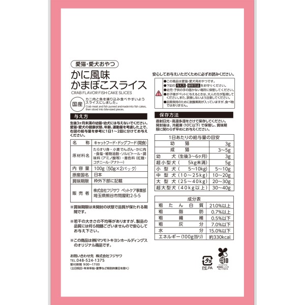 마츠키요 게맛살 가마보코 슬라이스 50g×2 > 어육 소재 어린고양이·성묘용