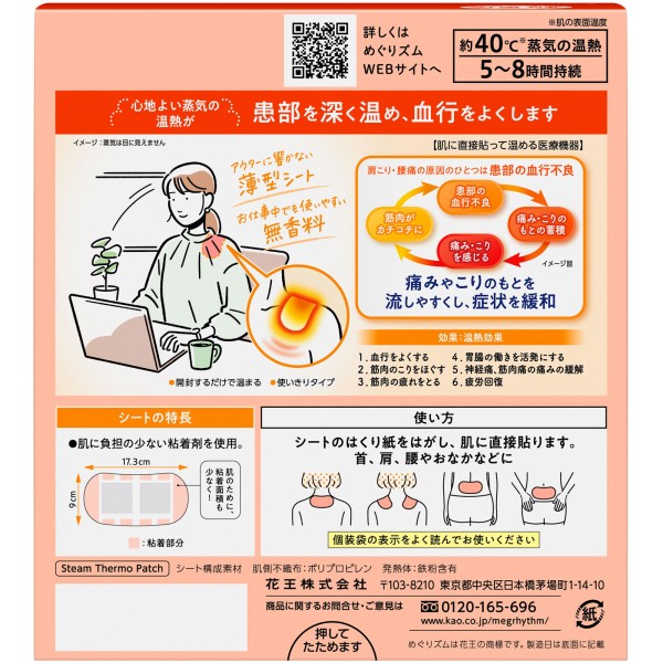 메구리즘 증기 온열 시트 피부에 직접 붙이는 타입 16매 카오 > 온열 용구