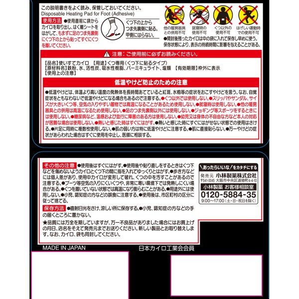 키리바이 핫팩 양말용 붙이는 발끝 블랙 15P 고바야시제약 > 신발·양말용 카이로
