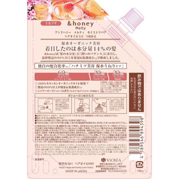 앤드 허니 멜티 모이스트 리페어 헤어오일 3.0 리필 75ml 주식회사 비클레아 > 앤드허니