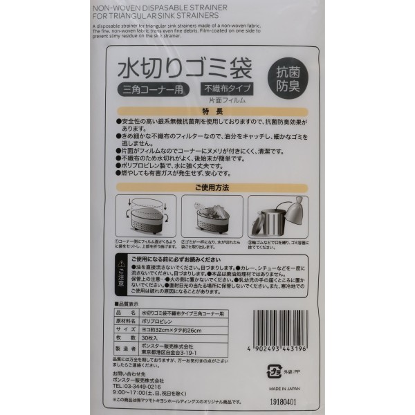 마츠키요 물 거름 쓰레기 봉투 부직포 타입 삼각 코너용 30매입 > 물빠짐 백 부직포 삼각 코너용