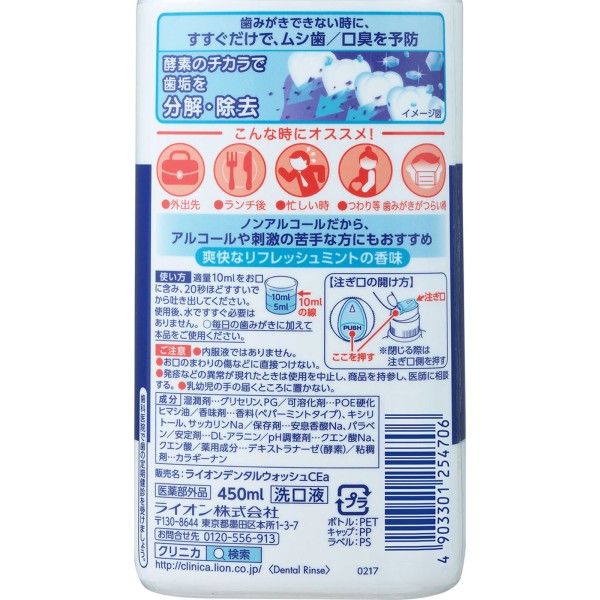 클리니카 퀵 워시 논알코올 마우스워시 450ml 라이온 > 충치 예방