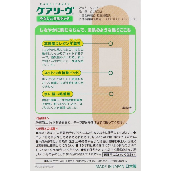 케어리브 M 사이즈 베이지 30매 니치반 > 구급 밴드(스탠더드 타입)