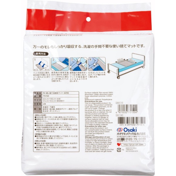 플러스 하트 일회용 고흡수 매트 6매 오사키 위생재료 > 방수 시트(일회용)