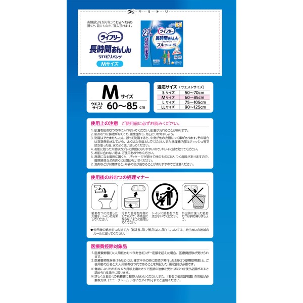 라이프리 재활 팬츠 M 24매 유니참 > 장시간