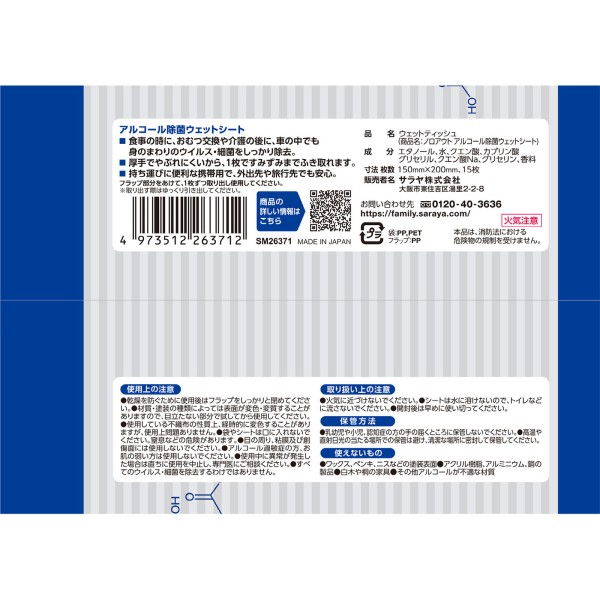 스마트 하이진 노로아웃 알코올 제균 시트 15매 사라야