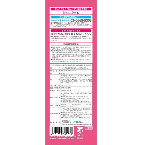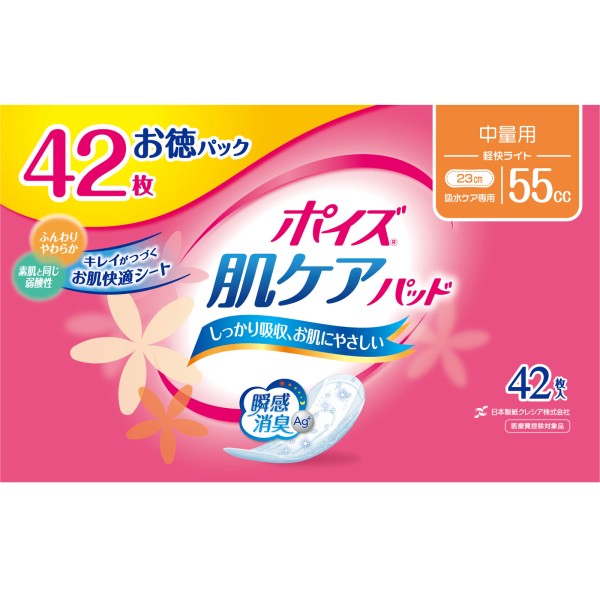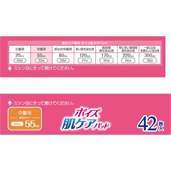 ・吸収量の目安:55cc(中量用)パッドサイズ:8.5cm×23cm
