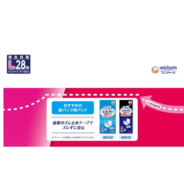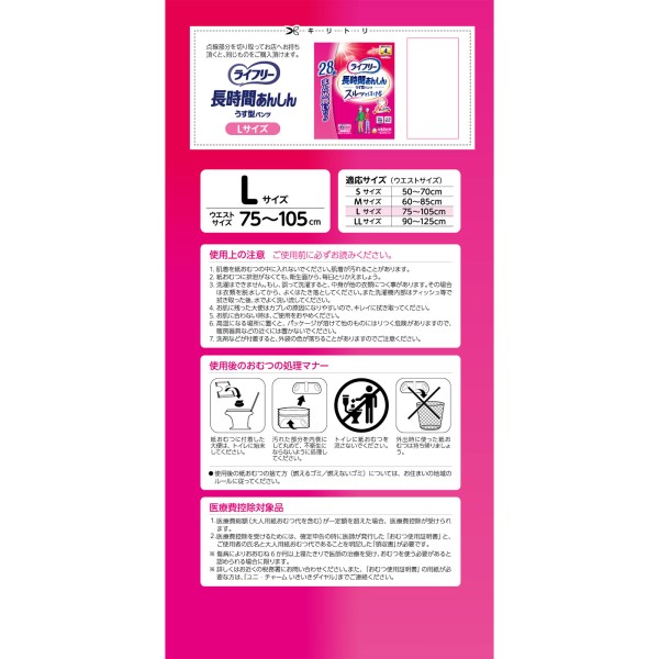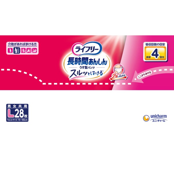 라이프리 장시간 안심 얇은 팬츠 L 28매 유니참 > 장시간
