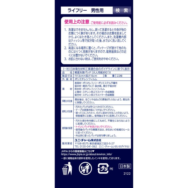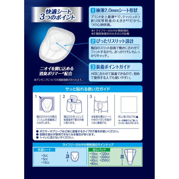 라이프리 상쾌한 남성용 쾌적 시트 남성용 경실금 패드 3cc 미량용 22매 유니참