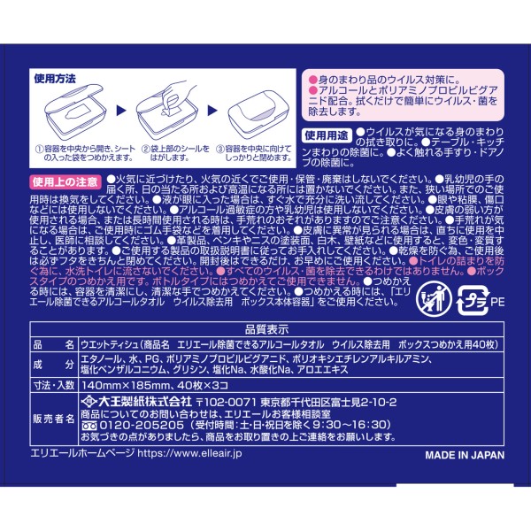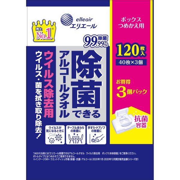 엘리에르 제균·바이러스 제거용 박스 리필 40매×3P 다이오제지 > 제균
