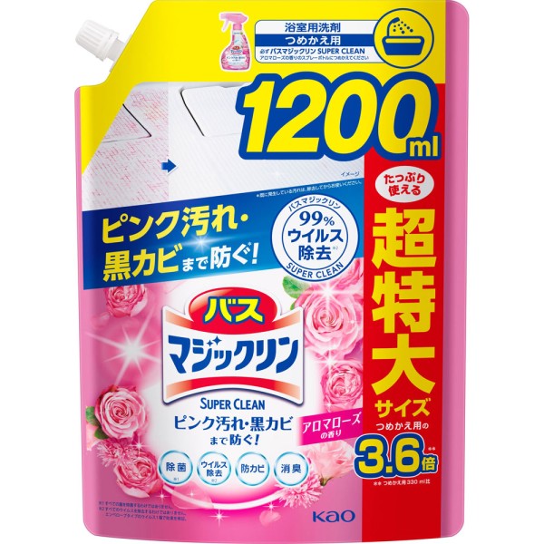 배스 매직린 SUPER 폼 세정 로즈 대용량 스파우트 1200ml 카오 > 욕실 클리너