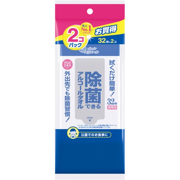 엘리에르 제균 알코올 타올 휴대용 32매×2P 다이오제지 > 제균