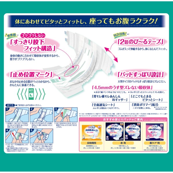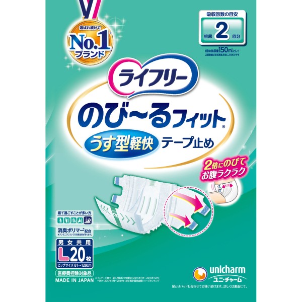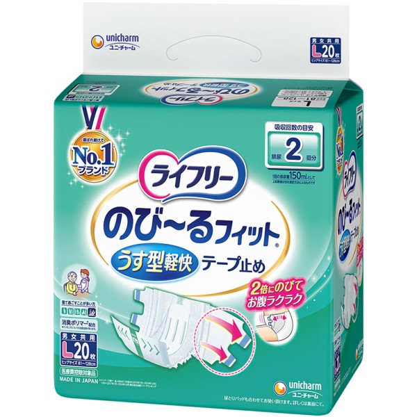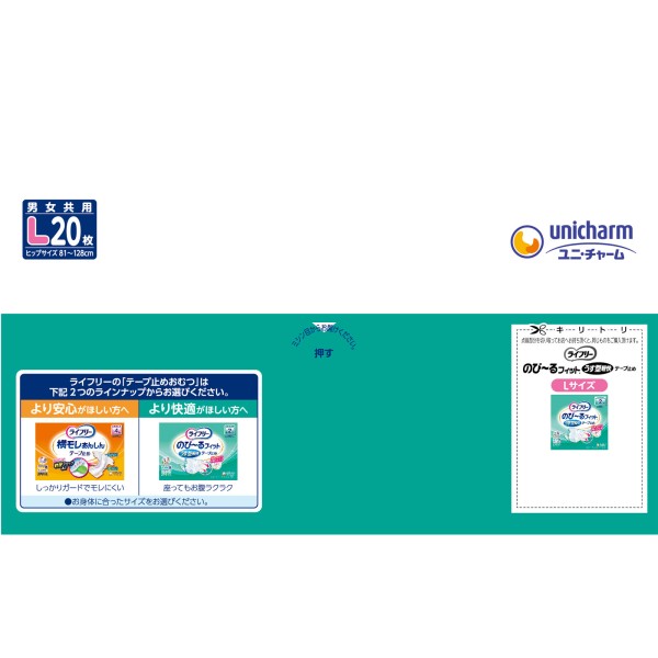 라이프리 늘어나는 피트 얇은 경쾌 테이프 L 20매 유니참 > 테이프 고정 타입