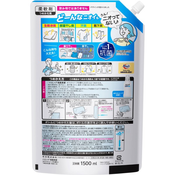 하밍 소취 실감 화이트 소프향 리필 1500ml 카오 > 농축 방취