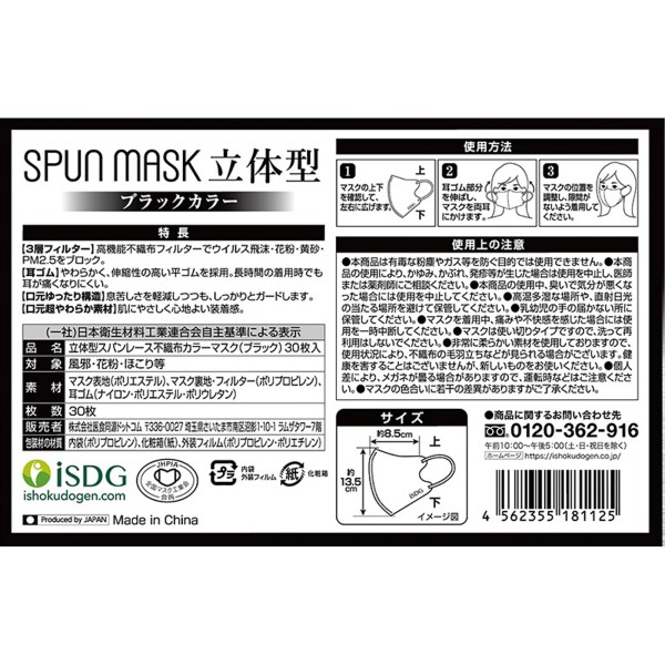 스판레이스 부직포 입체 컬러 마스크 블랙 개별 포장 30매입 의식동원닷컴