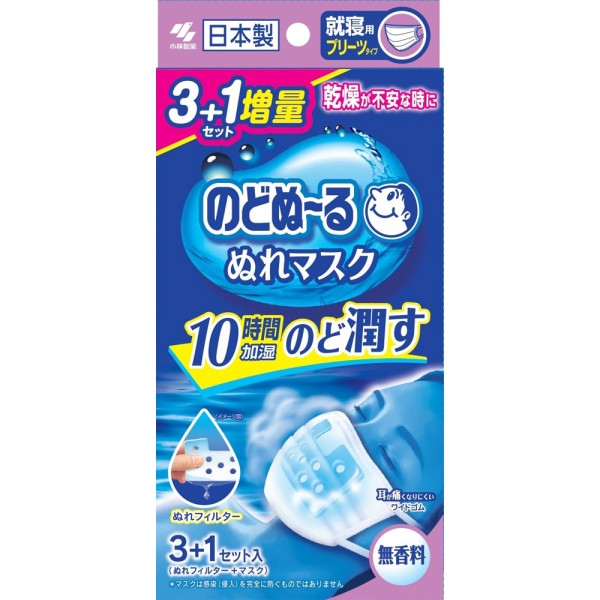 목 촉촉 마스크 취침용 플리츠 타입 무향 증량 3매+1매 고바야시제약 > 가습 타입