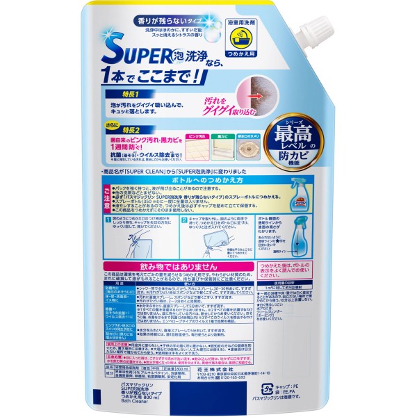 배스 매직린 SUPER 폼 향 남지 않는 스파우트 800ml 카오 > 욕실 클리너
