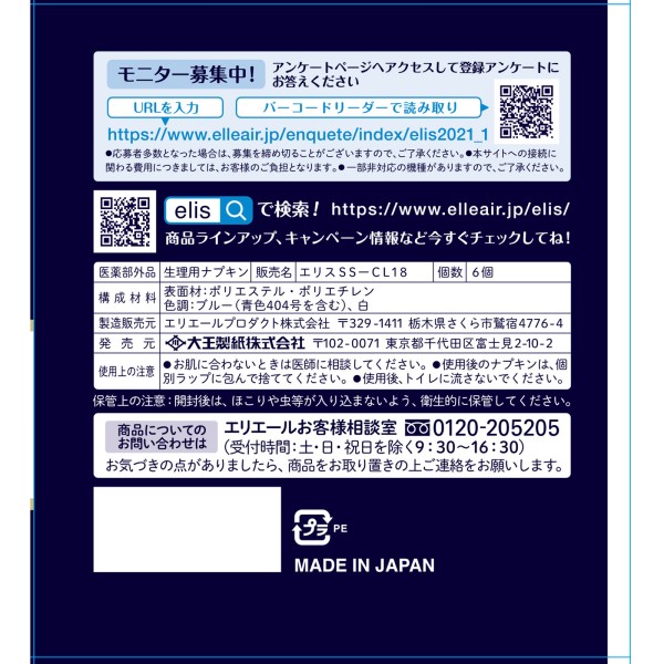 에리스 아침까지 초안심 클리닉스 (양이 걱정되는 분용) 날개 포함 6매 다이오제지 > 엘리스 울트라 가드
