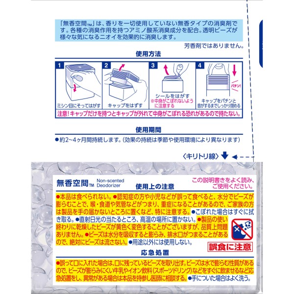 ●「無香空間(TM)」は、香りを一切使用していない無香タイプの消臭剤です