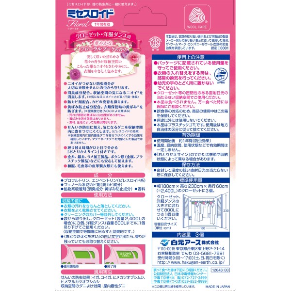 미세스 로이드 플로럴 클로젯 양복장용 FB 3개 시라모토 아스 > 향기 1년용