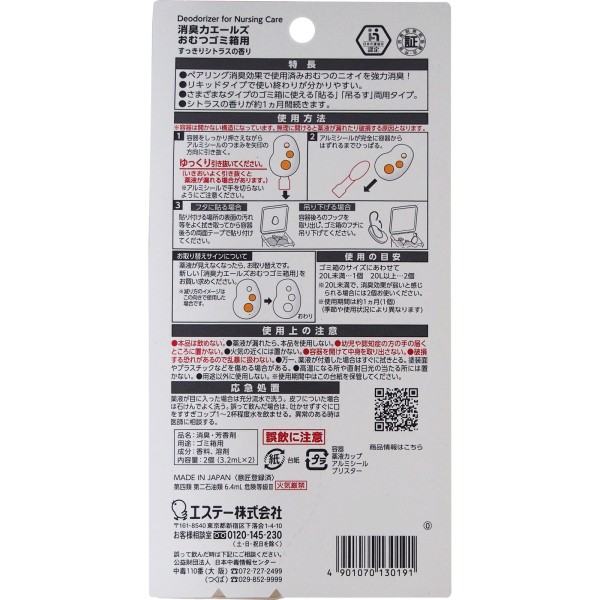 소취력 에르즈 기저귀 쓰레기통용 상쾌 시트러스향 2개 에스테 > 탈취제