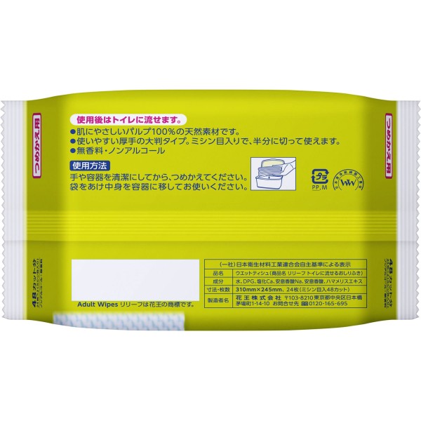 리리프 화장실에 흘려보낼 수 있는 엉덩이 물티슈 리필 24매 카오 > 물티슈 (변기에 흘려보낼 수 있는 타입)