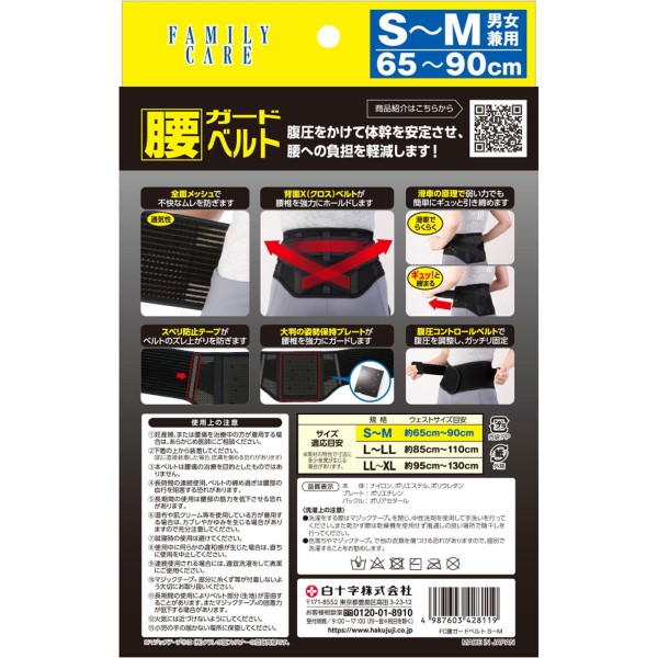 FC 허리 가드 벨트 S·M 백십자 > 요통 벨트