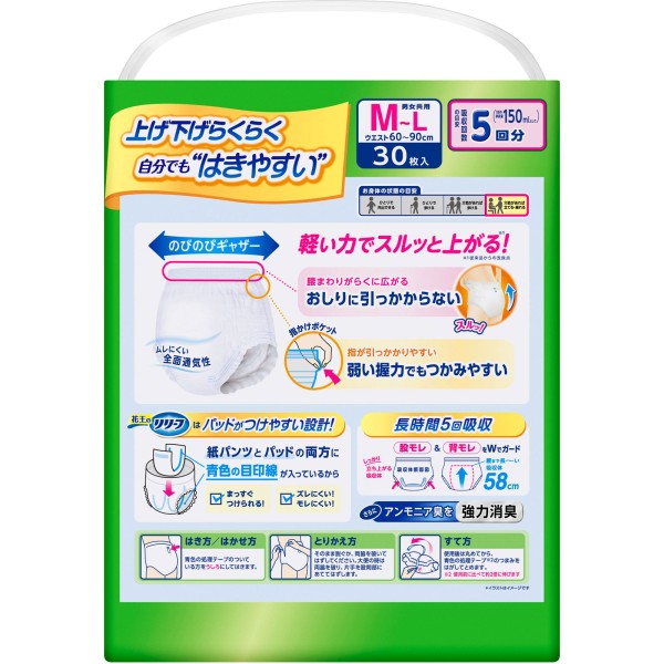 리리프 팬츠 타입 올리기 내리기 편한 장시간 팬츠 5회분 M-L 30매 카오 > 장시간