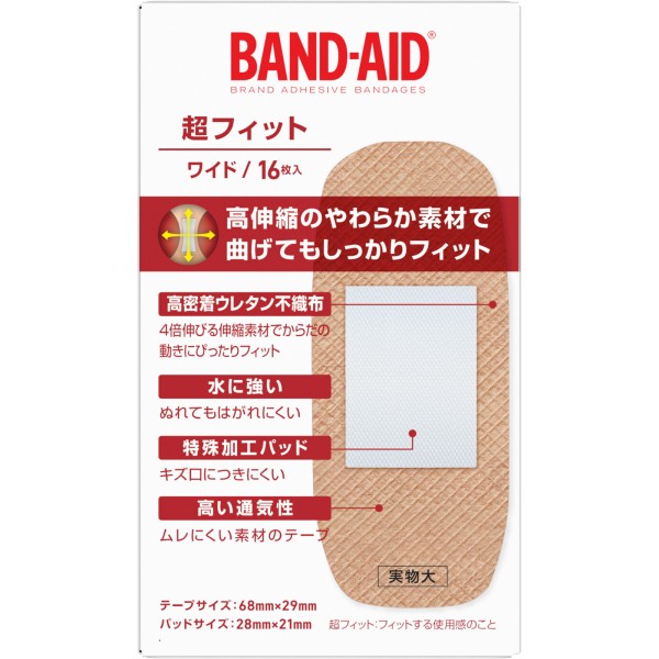 밴드에이드 초 피트 와이드 16매 JNTL 컨슈머 헬스 > 구급 밴드(스탠더드 타입)