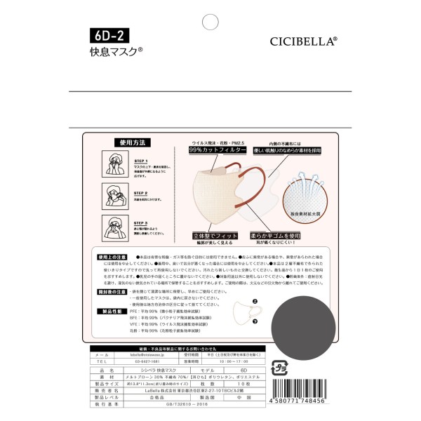 CICIBELLA 쾌식 마스크 올드 레이스 10매입 La Bella > 입체 타입