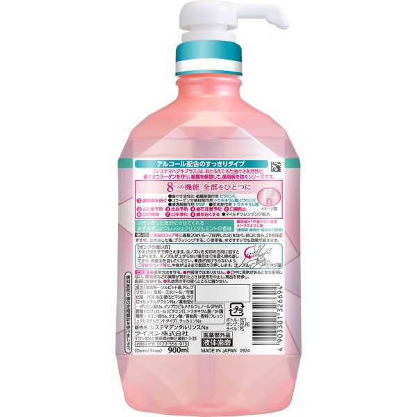 시스테마 잇몸 플러스 프리미엄 덴탈 린스 프레쉬 크리스탈 민트 마우스워시 900ml 라이온 > 치주병 예방