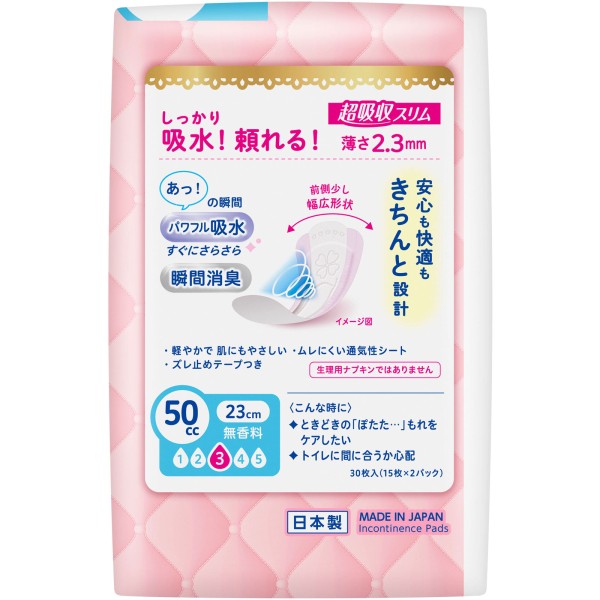 もしもの時も安心、「女性のおまもり」さらピュア吸水から、しっかり吸収、頼れる超吸収スリム。