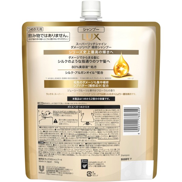 럭스 슈퍼 리치 샤인 데미지 리페어 보수 샴푸 리필 560g 유니레버 재팬 > 럭스